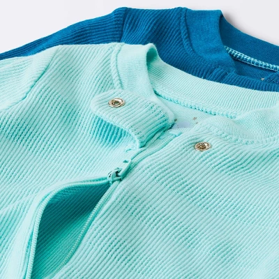 Bring cute style and toasty warmth to your munchkin’s everyday wardrobe with this 2-Pack Waffle Sleep N’ Play from cloud island™. This pack of two waffle sleep n’ plays includes one in blue and another in light blue for an adorably sweet look. Made from cotton-blend fabric for soft comfort, these long-sleeve sleep ‘n plays come with a built-in footed design to provide full coverage, and the convenient full-length inverted zipper allows for easy dressing and diaper changing. Plus, the safety tab over the top of the zipper protects their chin from scratches.