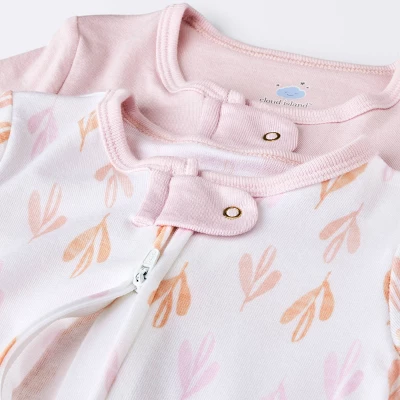 Create a variety of cute looks for your baby with this 2-Pack of Premium Sleep N’ Plays from cloud island™. Made from a soft and stretchy fabric for comfortable wear, these full-sleeve sleep n’ plays are designed with footed ends for snug fit. Best of all, they’re designed with an inverted zipper on the front to help keep baby cozy during diaper changes. This pack includes two sleep n’ plays — one in a solid pink hue and the other adorned with allover pink and beige leaf prints — to add variety to their sleepwear.