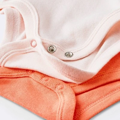 Refresh your baby’s wardrobe with the cute style of these 4-Pack Short-Sleeve Bodysuits from cloud island™. This baby bodysuit set includes two solid-color bodysuits, one in orange and one in light pink, plus two with floral print for cute dressing options each day. Made with 100% cotton in a single-layered construction, this short-sleeve bodysuit set offers soft and breathable comfort. Best of all, the lap shoulders and crotch snaps make dressing and diaper changes a breeze.